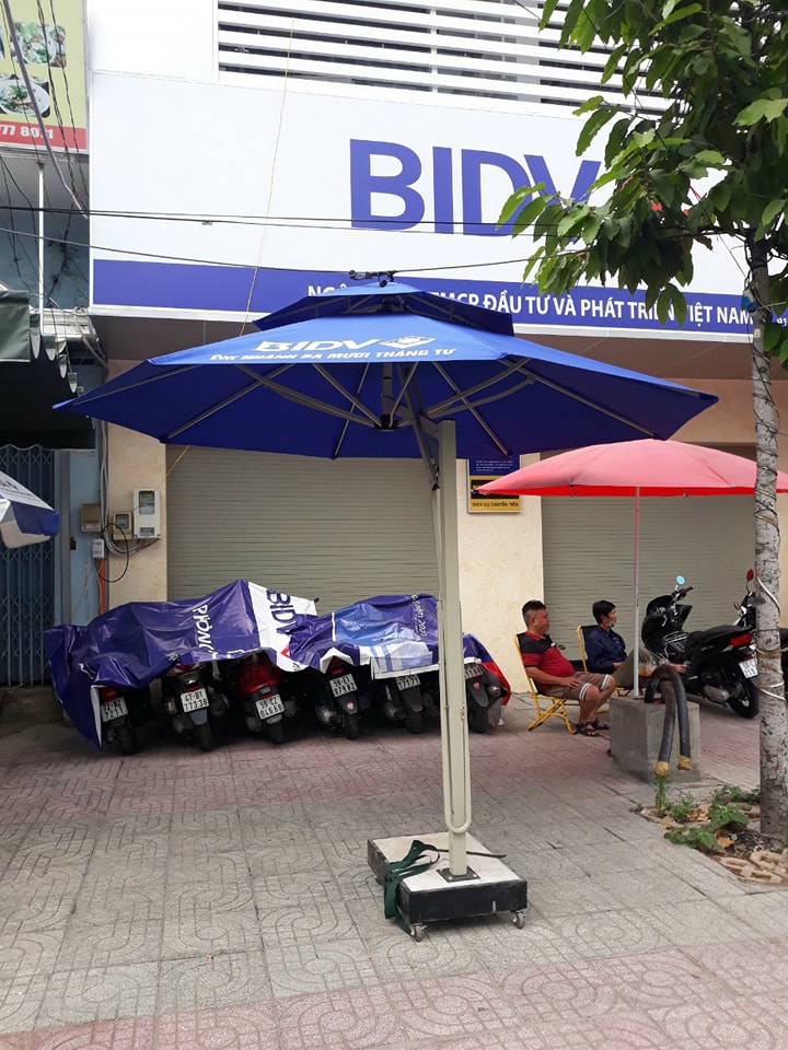 1_Các ngân hàng như Sacombank, Vietcombank và BIDV. thường tổ chức các sự kiện ngoài trời, hội nghị và các buổi gặp gỡ khách hàng. Họ cần những giải pháp che phủ chất lượng cao để bảo vệ khách hàng và nhân viên khỏi thời tiết, đồng thời tạo không gian thoải mái và sang trọng. Dù che của chúng tôi đáp ứng đầy đủ các tiêu chí về chất lượng, thiết kế và độ bền.