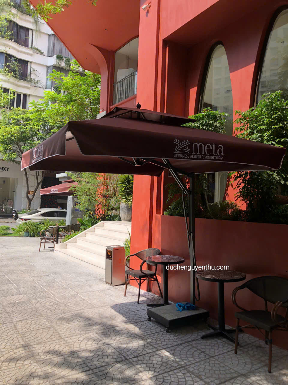 Dù lệch tâm vuông 2m5 x 2m5 – Giải pháp che nắng cao cấp cho quán cà phê, nhà hàng ngoài trời