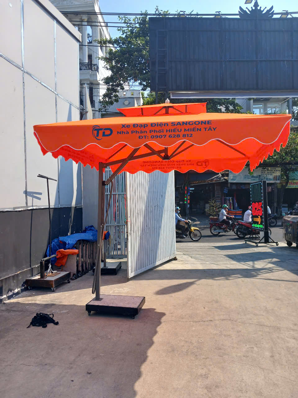 Chúng tôi nhận thi công, lắp đặt tận nơi tại TP.HCM và các tỉnh lân cận. Hỗ trợ in logo thương hiệu trên tán dù theo yêu cầu.